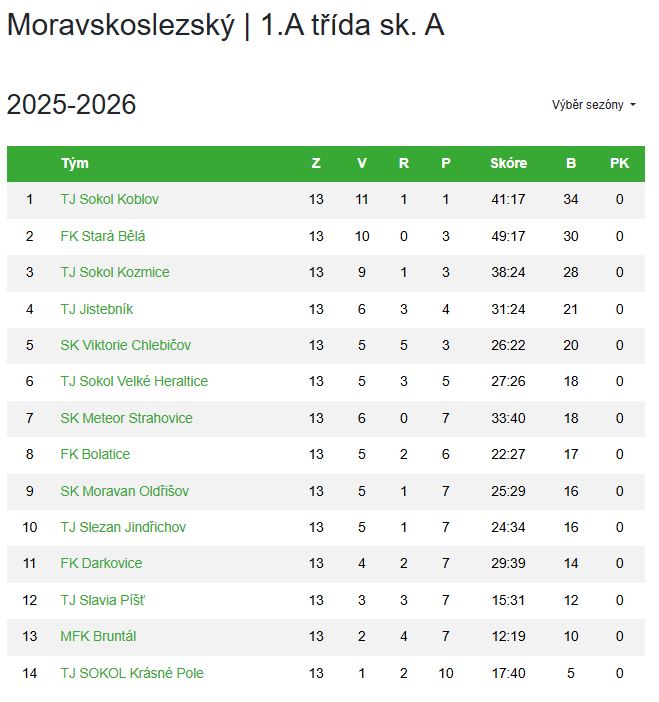 Po sobotní porážce fotbalistů z Krásného Pole jsou naši muži po svém posledním zápase na krásném 4. místě. Děkujeme všem hráčům za skvělou reprezentaci a fanouškům za fantastickou podporu.